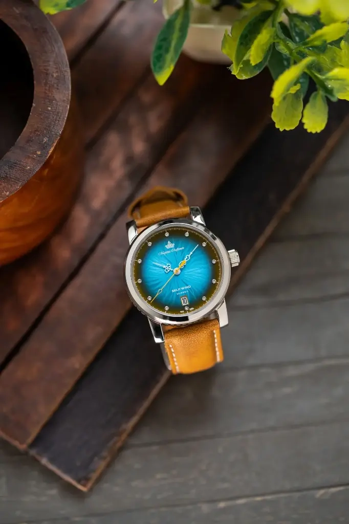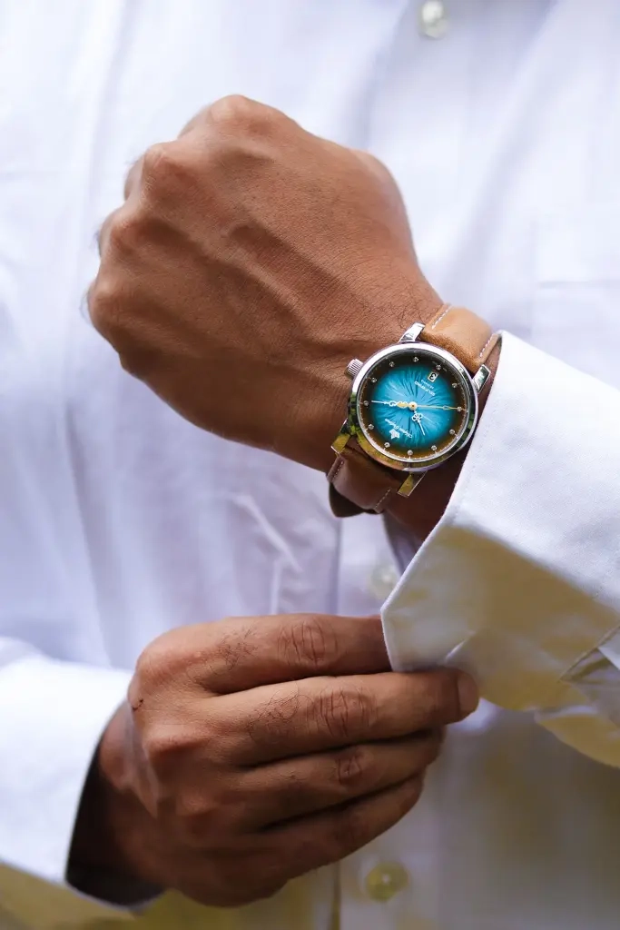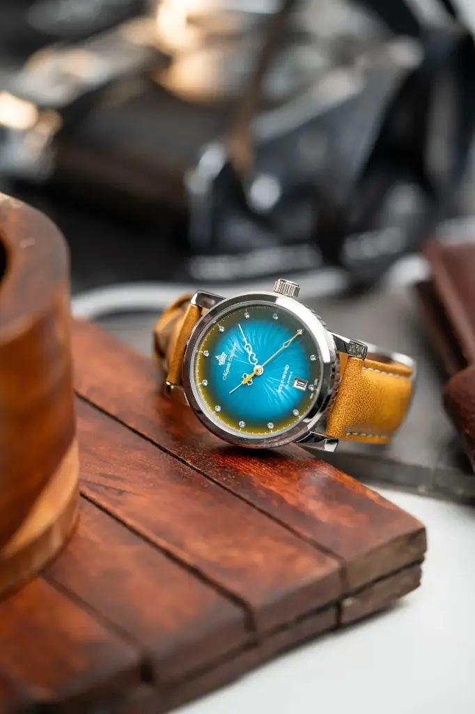 Crafted with precision, the dial undergoes 35-40 machining stages to etch the iris pattern, followed by layers of coatings & lacquers for depth & gradient. A final polished coat adds a sunburst finish, creating a truly stunning effect.