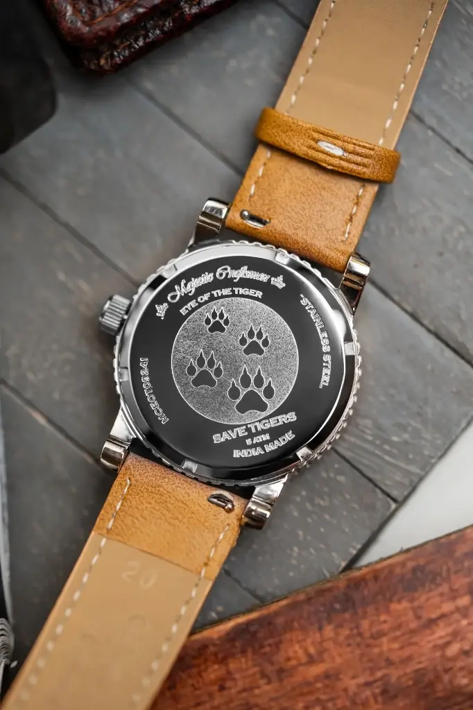 This watch safeguards a legacy & stands sentinel against vanishing roar. If we don’t strive to protect our nature we will remain with only footprints of the Tiger.
